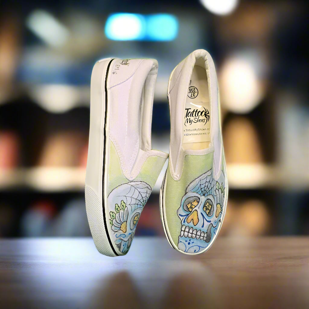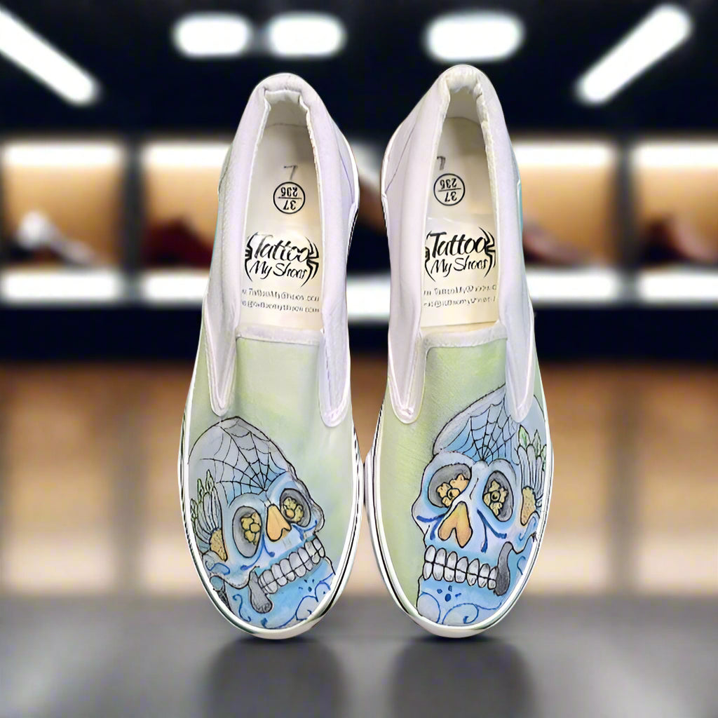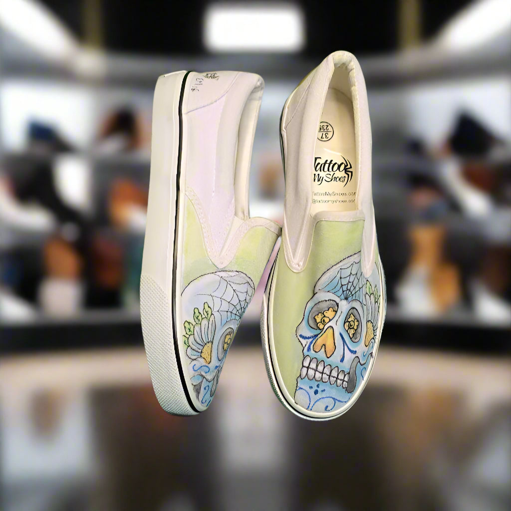 Introducing Blue on Chartreusse - the slip on shoes you've been looking for! These trendy shoes from Tattoo My Shoes Vendor combine style and comfort for the perfect addition to your wardrobe. Don't miss out on this must-have fashion statement!