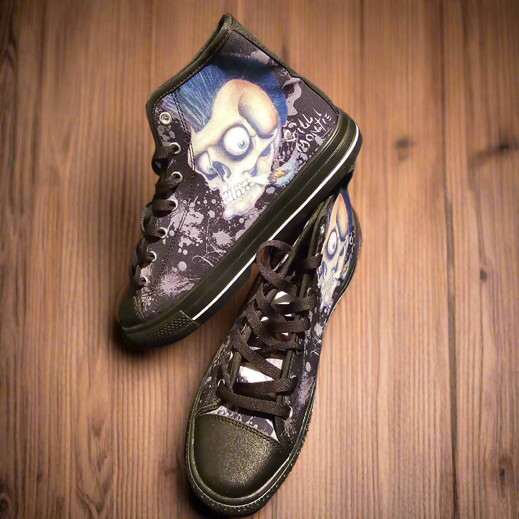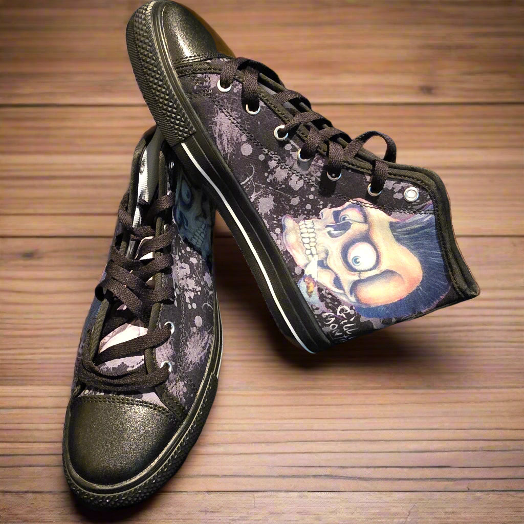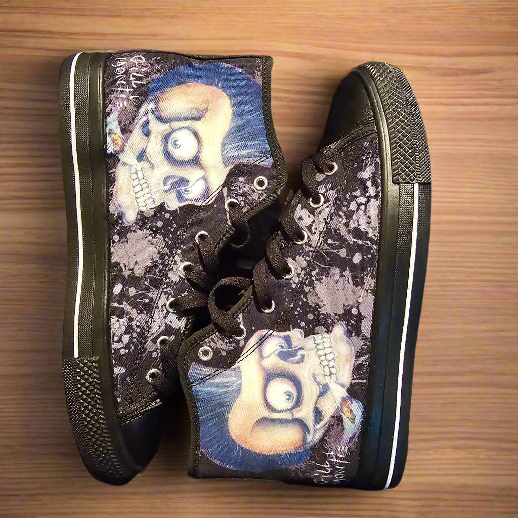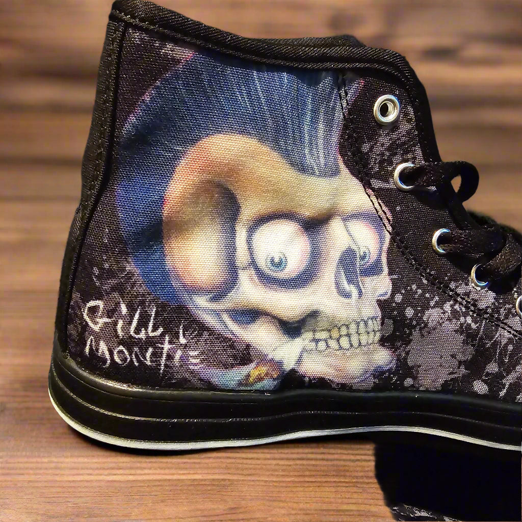 Get ready to rock the streets in style with Gill Montie High Tops! These black shoes from Tattoo My Shoes Brand will elevate your look and have you walking with confidence. Step into comfort and unmatched quality with Gill Montie - HT Black.