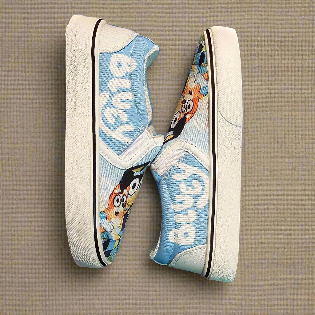 Add a sense of joy and fun to your child's wardrobe with our Printed Bluey Family shoes from Tattoo My Shoes! These stylish and comfortable kids shoes feature a cartoon print, making them perfect for everyday wear. Bring a smile to your little one's face with our unique and playful design.