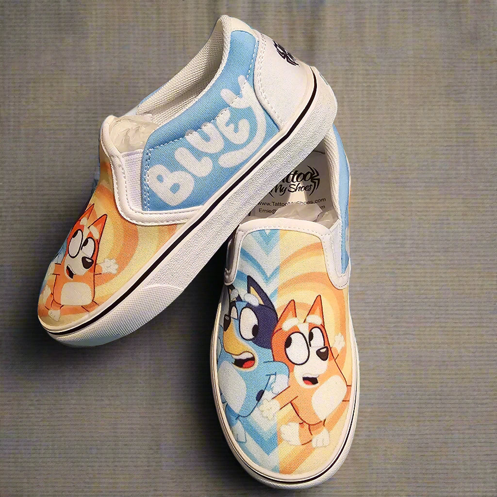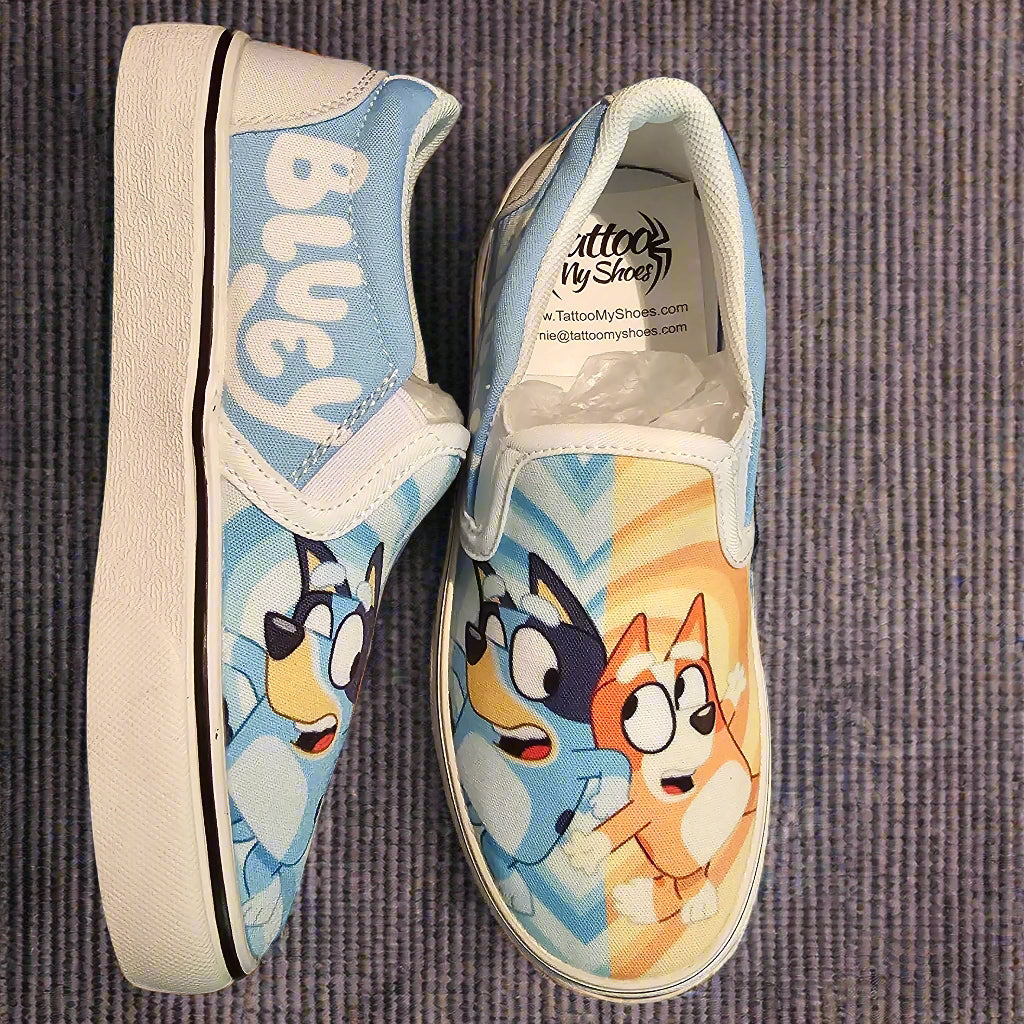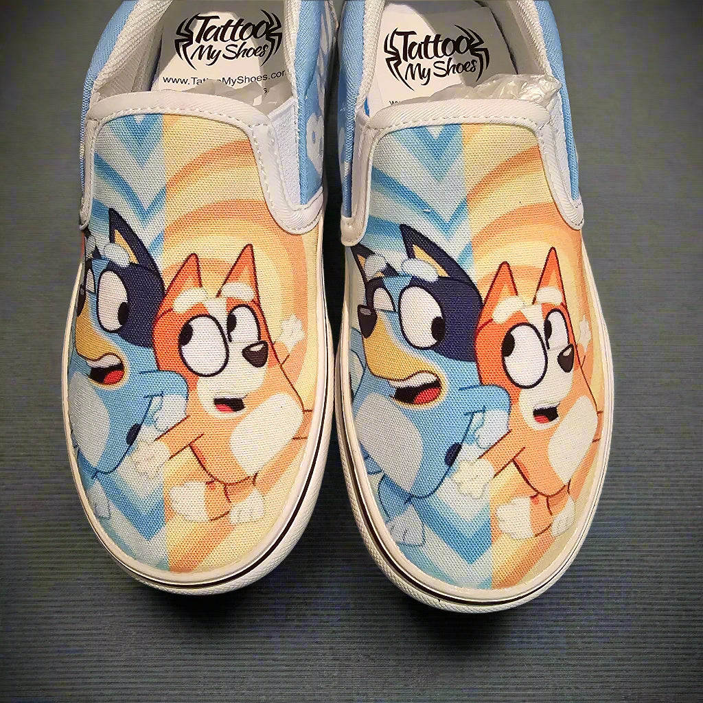 Brighten up your little one's outfit with our Printed Bluey Heart shoes. Designed by tattoo my shoes brand, these kids shoes are not only stylish, but also feature a fun and cool cartoon print that they will love. Add some fun to their step with these joyful shoes.