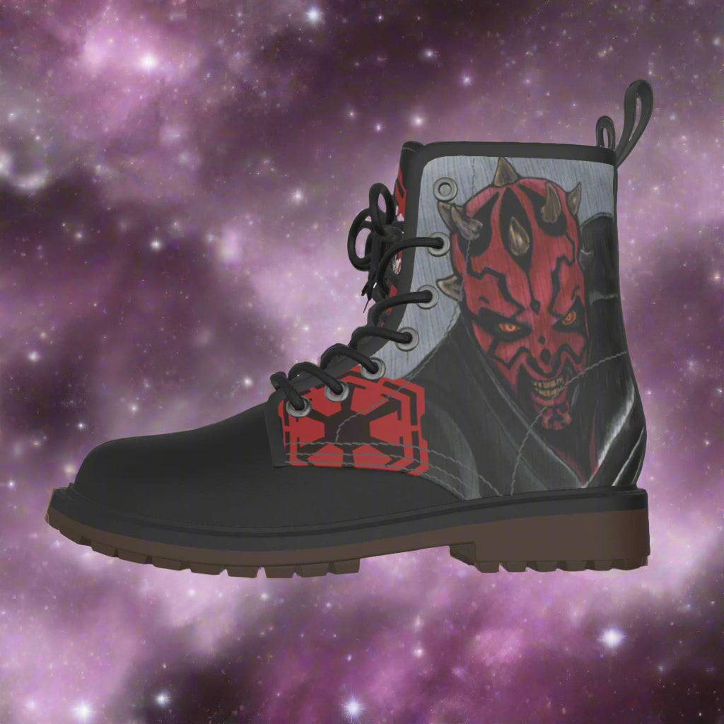 Step into the shadows with the Sith Lord Boots, inspired by the dark power of Darth Maul. Featuring original artwork by Tattoo My Shoes, these boots embody the fierce spirit of the Sith, perfect for those who dare to embrace their darker side. Bold, striking, and unmistakably commanding, they make a powerful statement wherever you go.