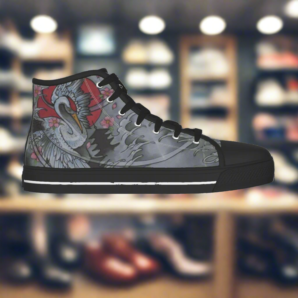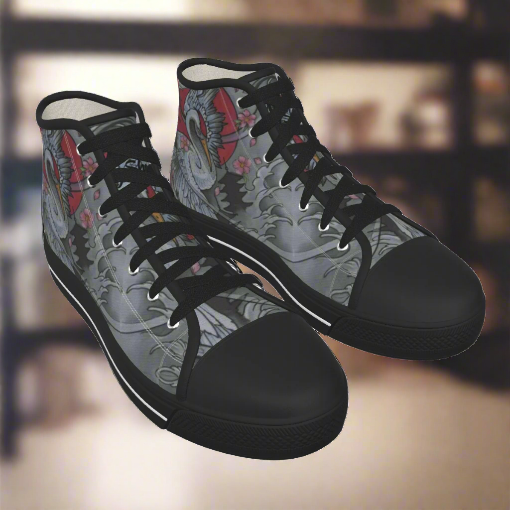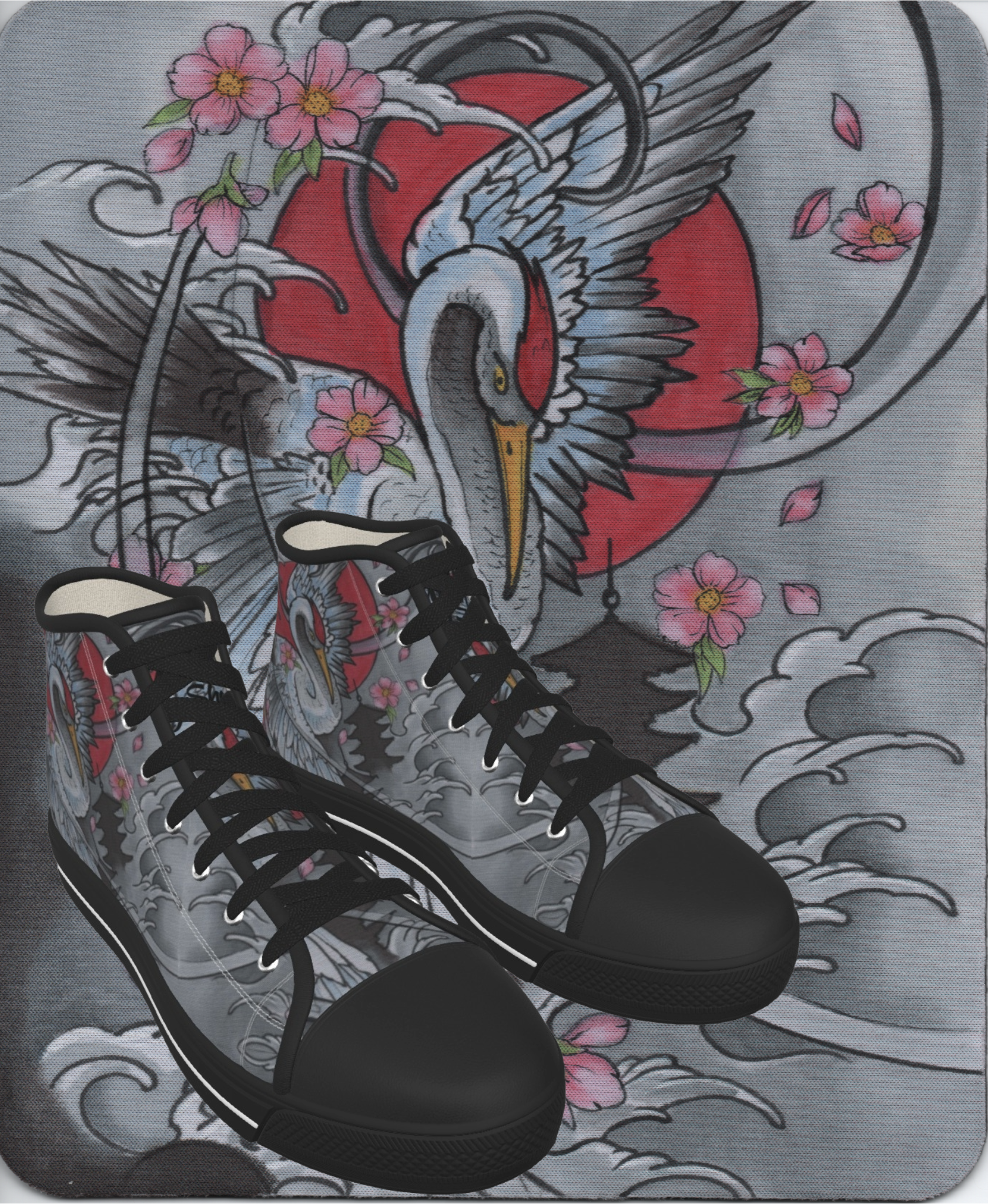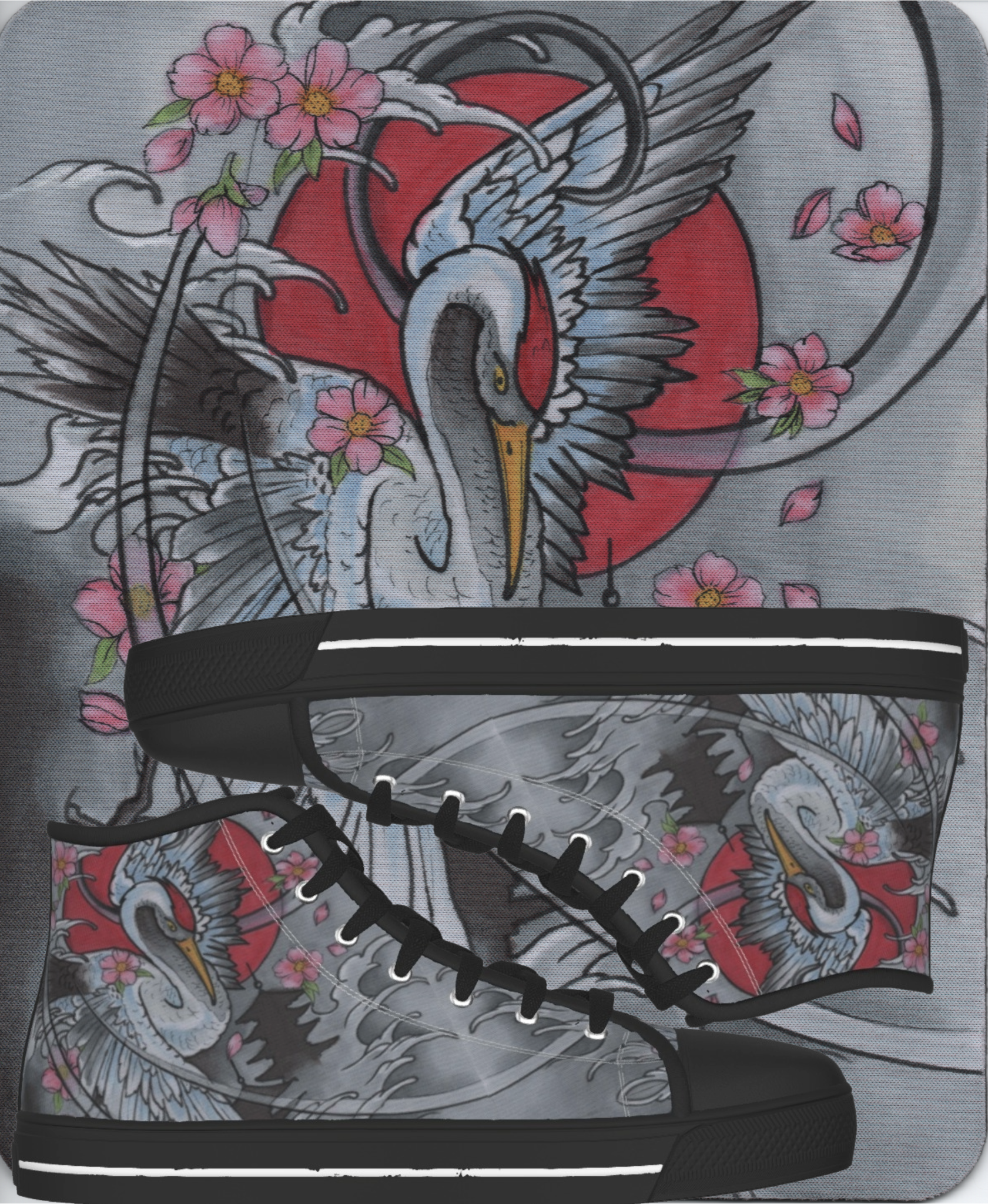 Elevate your style with the Snow Crane High Tops, inspired by elegant Japanese art. Featuring a striking snow crane design, these durable shoes are built to last through daily wear. Plus, they’re machine washable, making maintenance effortless. Step confidently with footwear that combines artistry and practicality.