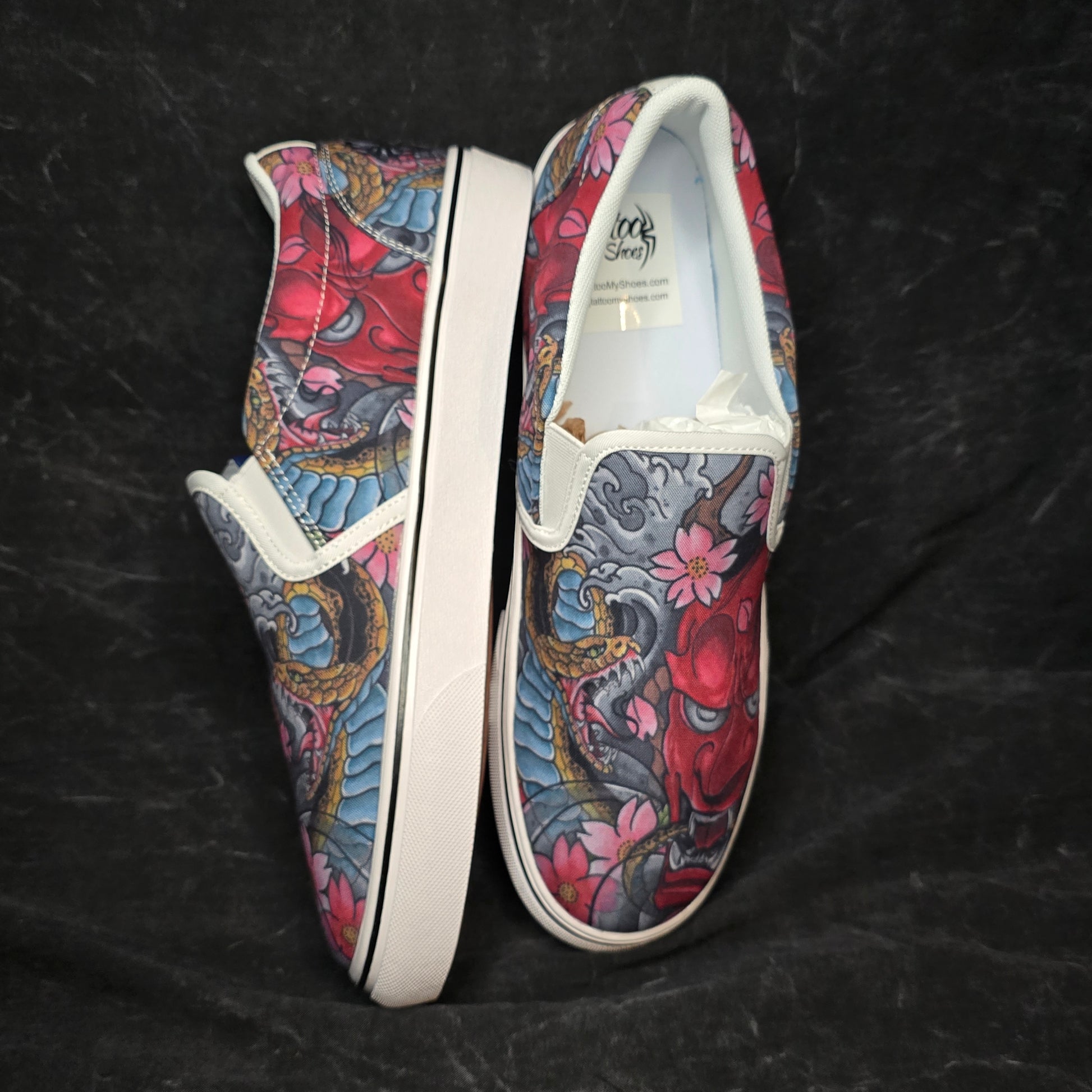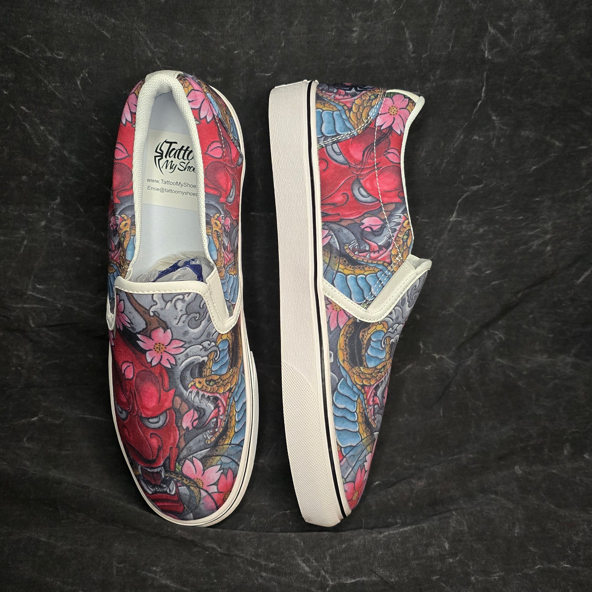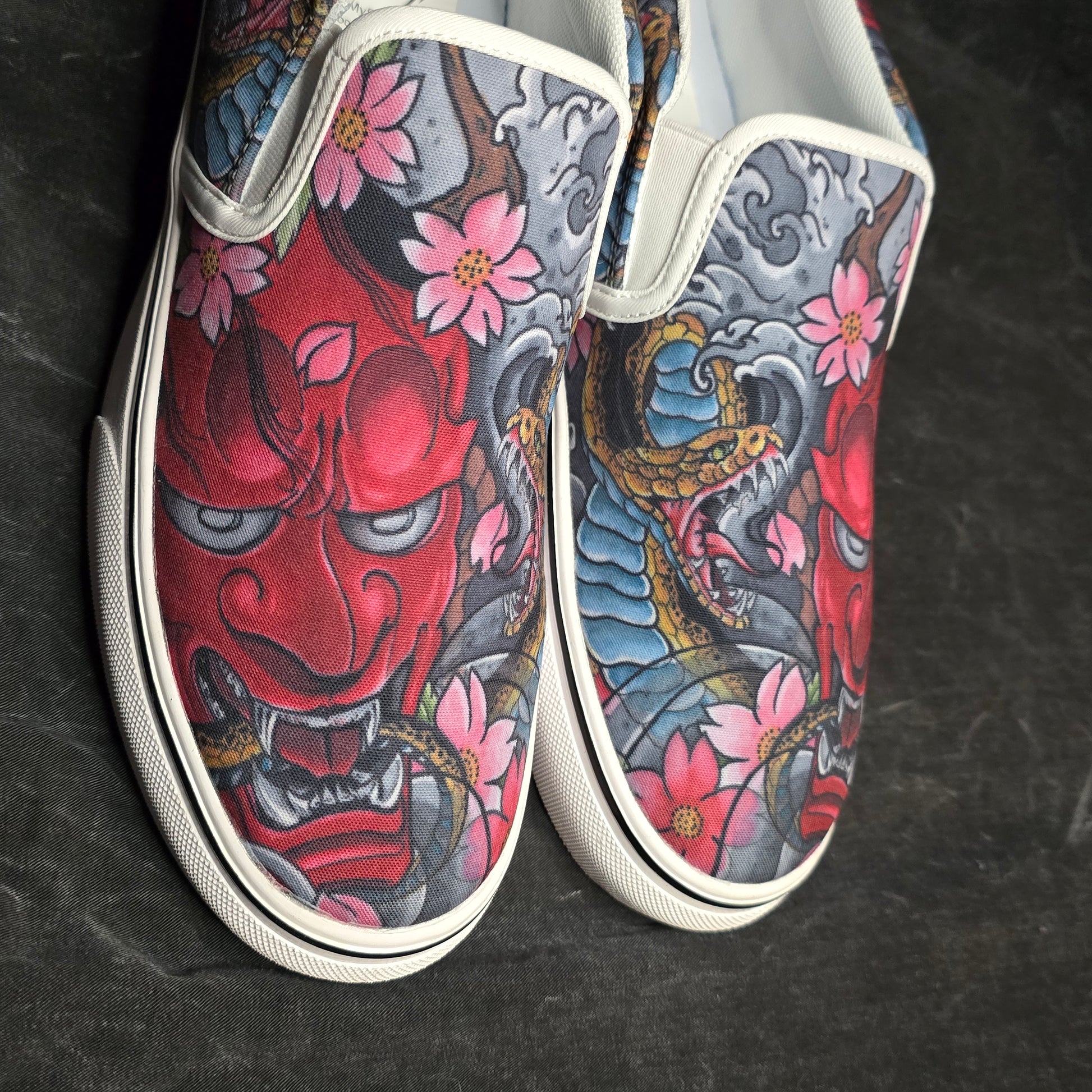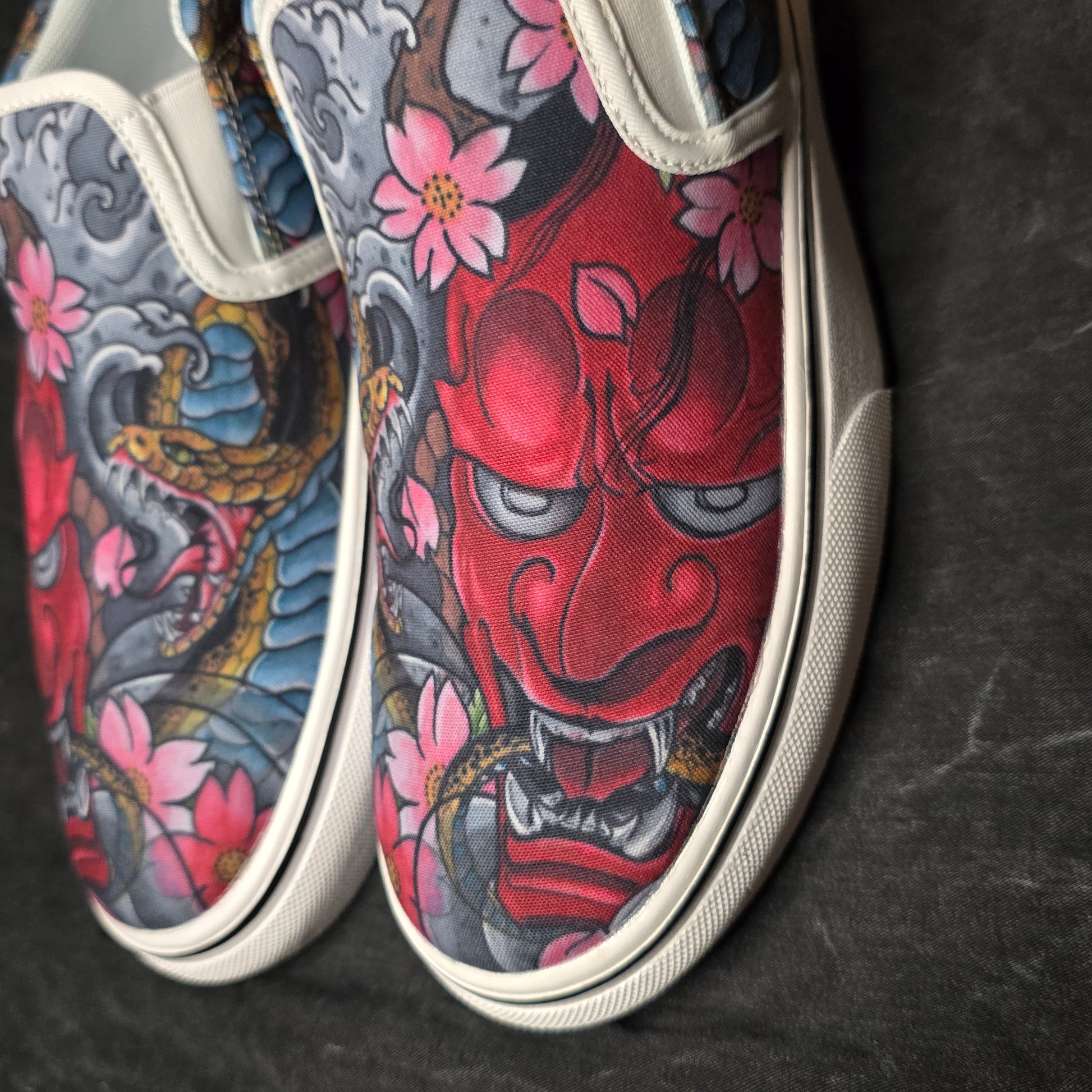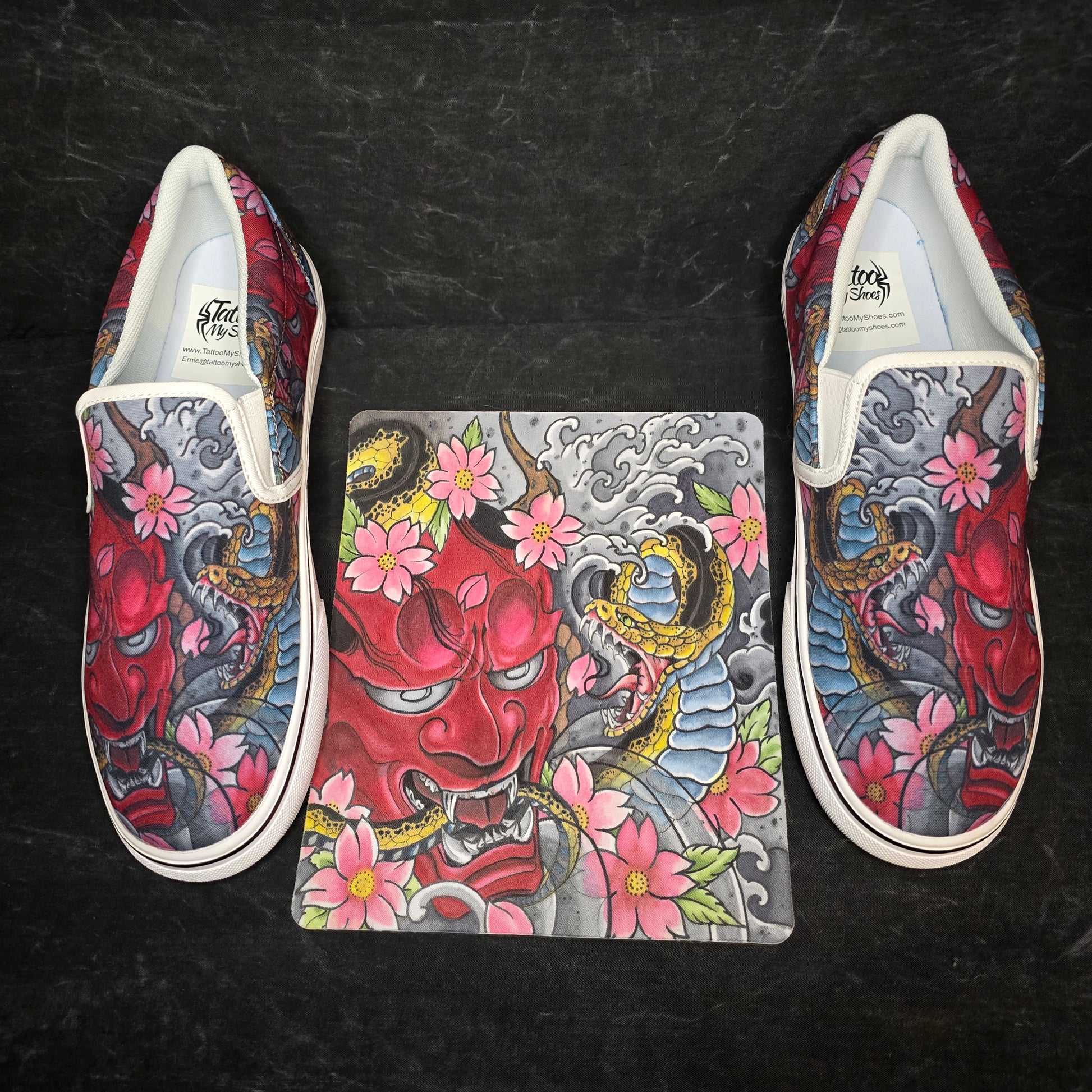 Celebrate bold artistry with this Traditional Hannya and Snake design, custom printed from an original hand-drawn artwork. Available in any size, it brings a unique, vibrant touch to your style. Plus, it’s machine washable for easy care, letting you enjoy this striking piece for years